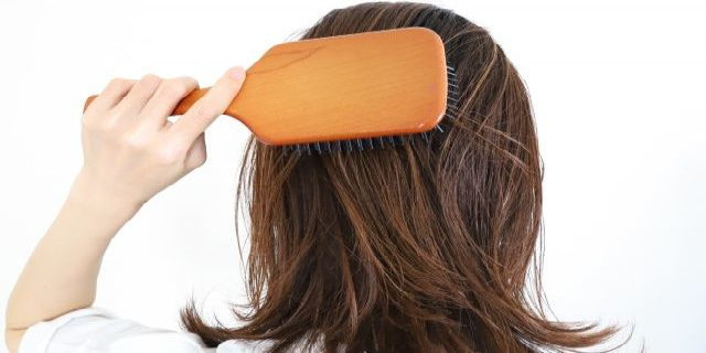 濡らす前にブラッシングを行い、髪の毛のほつれや付着したホコリを取る