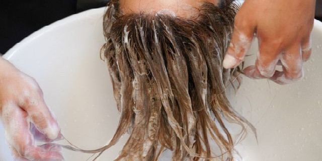 ぬるめのお湯で頭皮から毛先までしっかり濡らす
